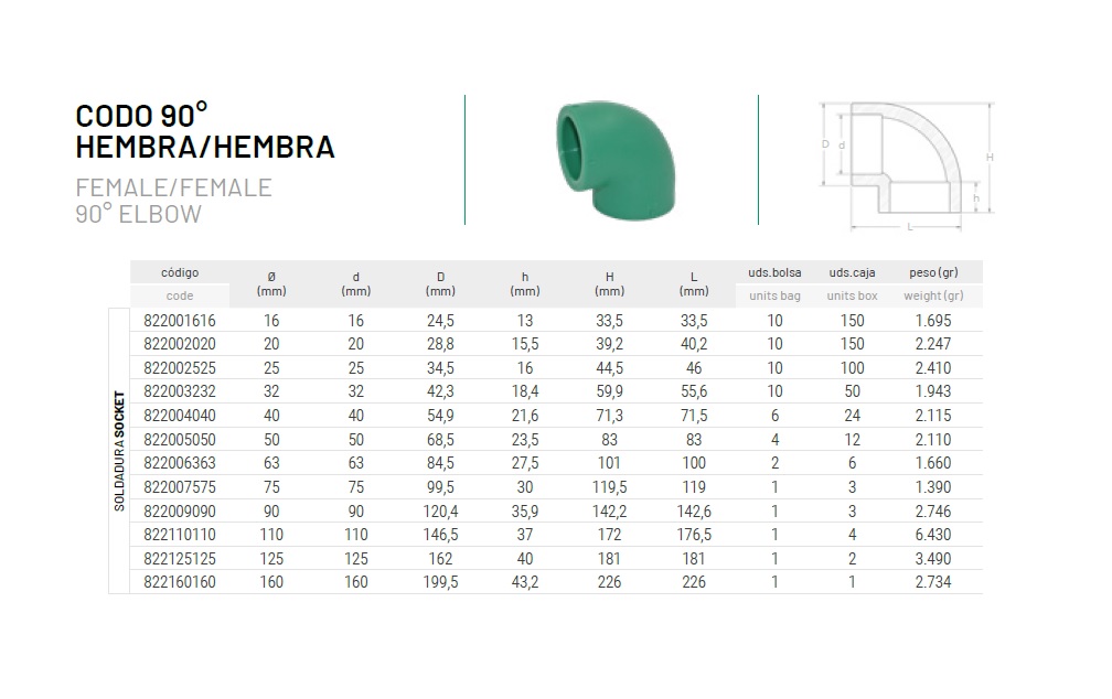 CODO 90º HEMBRA/HEMBRA REPOLEN PPR SYSTEM Ø40mm BOLSA 6 UDS