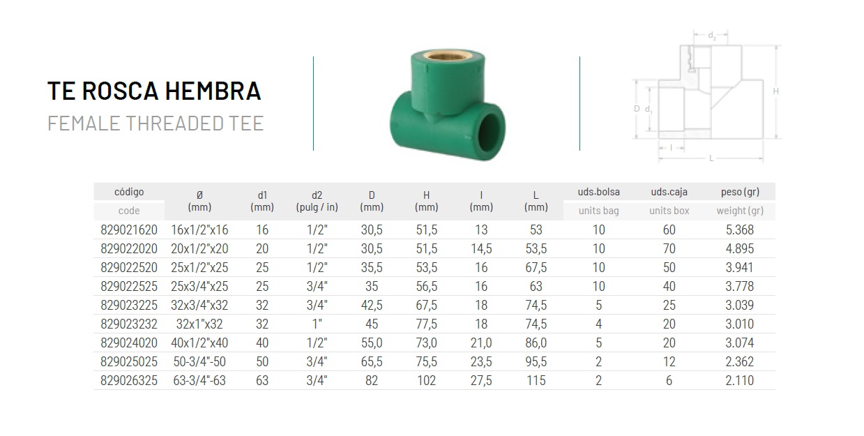 TE ROSCA HEMBRA REPOLEN PPR SYSTEM MIXTO 32×1″x32 BOLSA 4 UDS.
